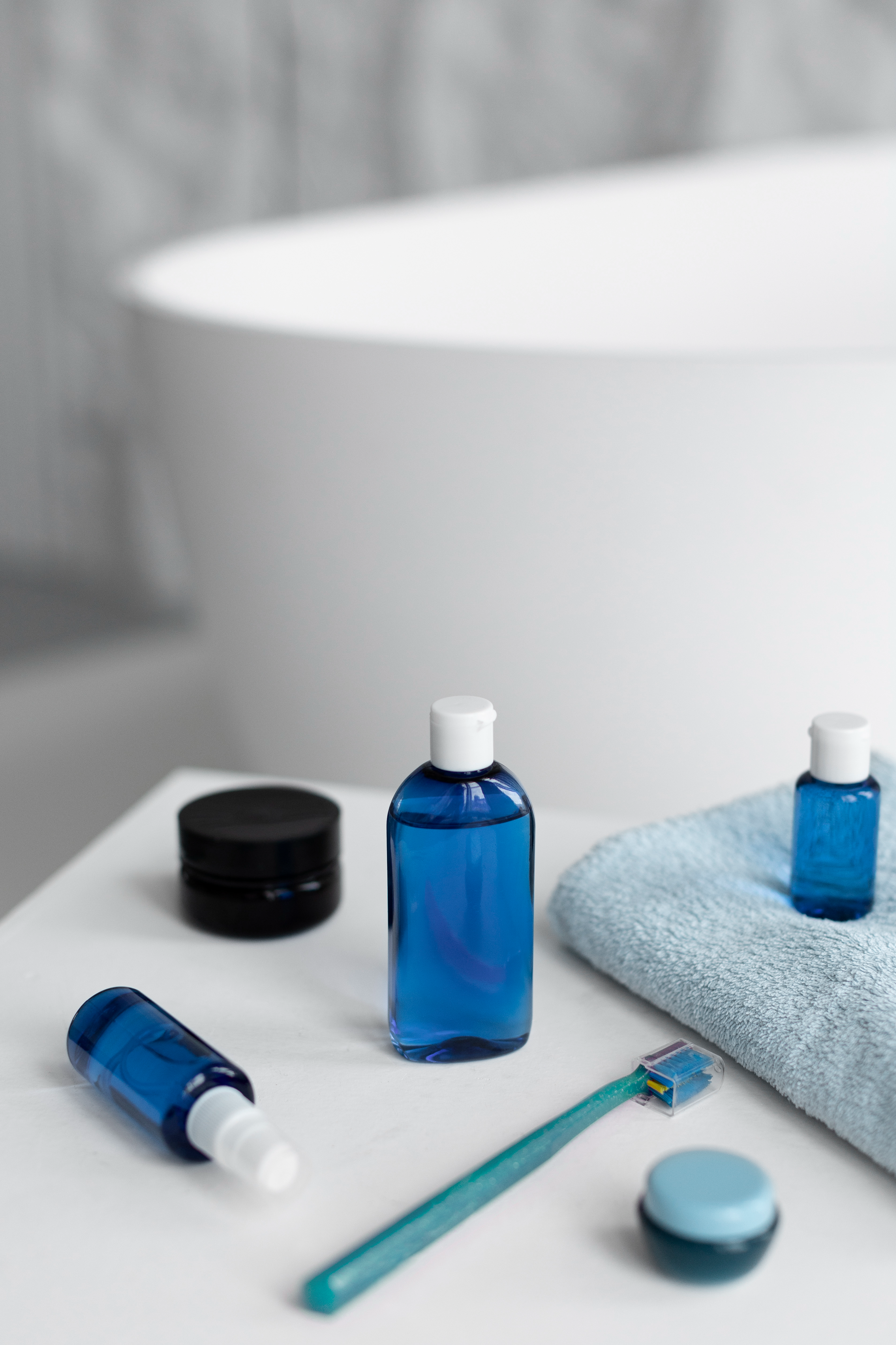 Essential tools, hygiene products, and materials used in dental care and oral health treatments.